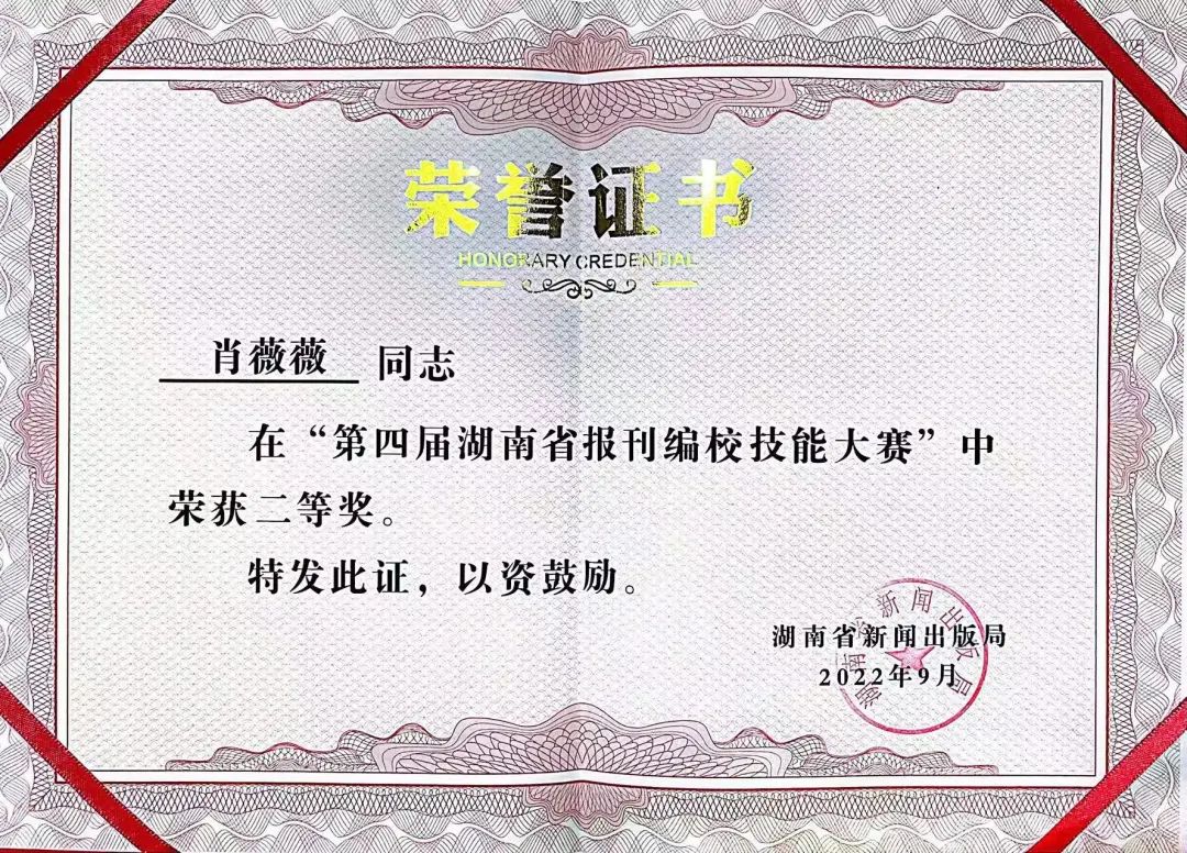 近日,湖南省新闻出版局印发了《关于表彰第四届湖南省报刊编校技能大赛获奖人员的通报》,棋牌游戏官网 《湖湘法学评论》编辑部参赛编辑肖薇薇老师荣获二等奖,这也是湖南大学期刊界唯一得奖者。