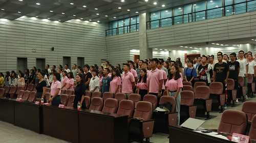 党委副书记罗英老师为青年志愿者团团长授旗并由青年志愿者团团长郭泽楷带领全体新生宣誓。接过旗帜,意味着肩负使命与职责;完成宣誓,意味着正式加入奉献自我的团队中,就像新生志愿者代表张婕在发言中所说,成为志愿者不仅要追求学识上的进步,更要追求人格上的发展,在党和人民需要的时候挺身而出,贡献力量,做有理想有担当,敢于创新,敢于服务社会的时代新人。