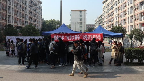 为展现新时代大学生的担当精神,呼吁同学们珍惜和平美好的生活,树立捍卫人类尊严、维护世界和平的坚定立场,湖南大学在天马学生公寓二区三栋篮球场举办“公祭日发声”活动。活动由湖南大学党委学生工作部主办,湖南大学易班工作室、棋牌游戏官网