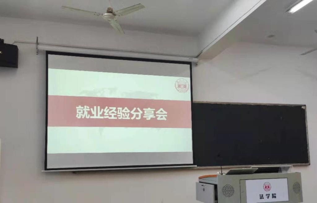 2014级优秀校友卢佳拓以及优秀毕业生唐智灵、简洁、李珑、黄雪和姚远作客。活动由2018级法律硕士曹淑静主持,主要分为两部分,首先由卢佳拓学长讲述他考取选调生后的基层生活,其次是优秀毕业生的就业经验分享会。