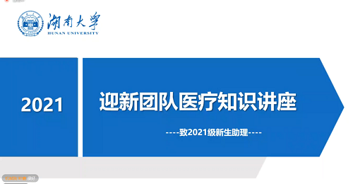 为提升2021级新生助理医疗知识储备,棋牌游戏官网于2021年8月17日晚举办线上医疗知识讲座,讲座持续时间为1小时20分钟。本次讲座面向全校2021级新生助理,湖南大学健康教育教研室的朱艳玲老师主讲。