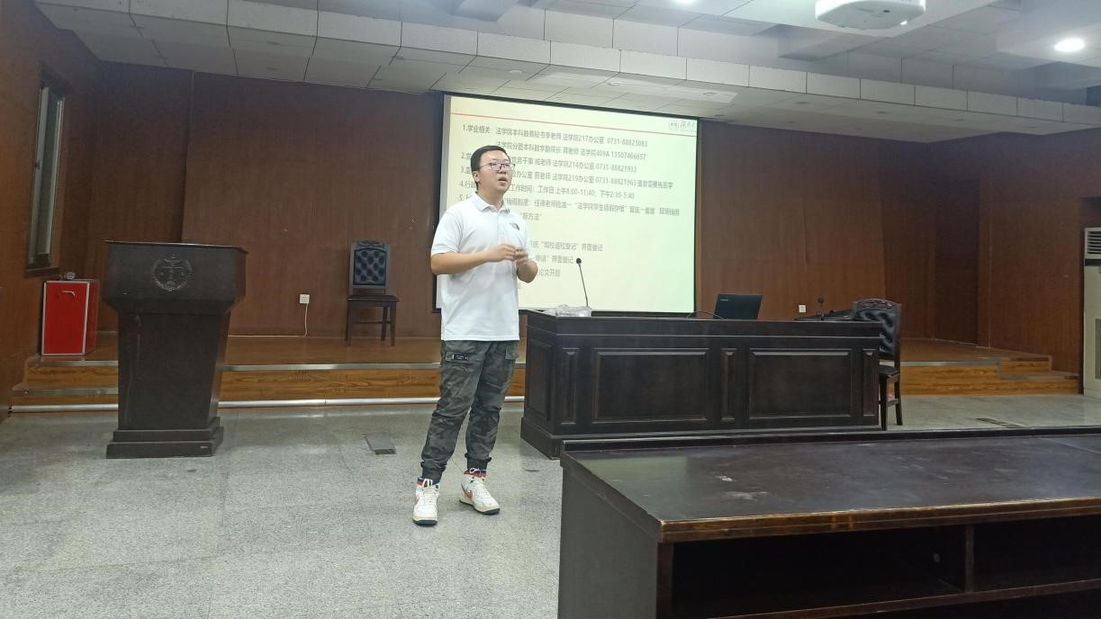 模拟法庭召开。2018级辅导员谷雨老师主讲,2018级全体同学参加会议。