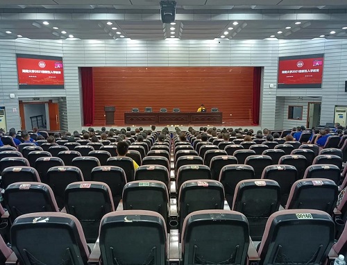 门前集合,在报告厅内认真聆听新生第一课的内容。