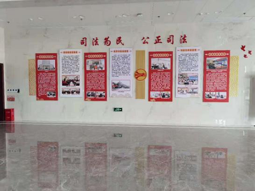 玉林市玉州区人民法院在队伍建设中格外关注思想工作建设。楼栋中有众多的墙体文化还有众多的立牌,内容紧跟时事,切实贯彻新时代中国特色社会主义法治思想。推动法院人员读党史,分享感悟,不断夯实思想建设的基础。