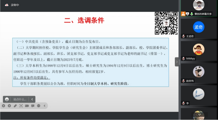 27日,余良老师对中央定向选调和北方各省份定向选调的考情进行讲解,介绍各省份考试时间、报考条件等信息,并重点解读北京、天津、河北、山东、山西等地区定向选调政策,介绍“青选计划”、“墩苗计划”等选调方案,并建议同学们选择对口岗位进行备考,为同学们提供了宝贵的备考经验。