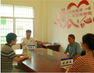 团队成员来到红色治理工作站中的红色调解室,亲身体验了红色调解的氛围,团队成员韩斌表示非常荣幸能够体验基层调解的环境,汲取基层法治经验。