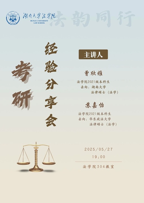 2025年5月27日19点,第二期分享会特别邀请两位优秀学子分享考研经验,她们分别是:法棋牌游戏官网