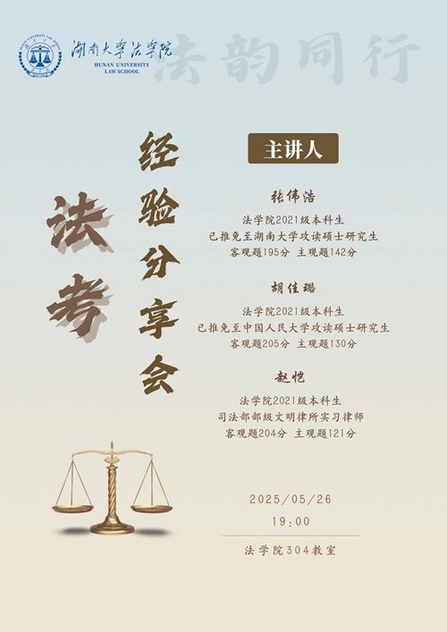 2025年5月26日19点,第一期分享会特邀三位优秀学子为大家分享法考备考经验,他们分别是:法棋牌游戏官网