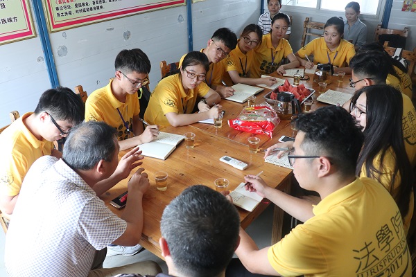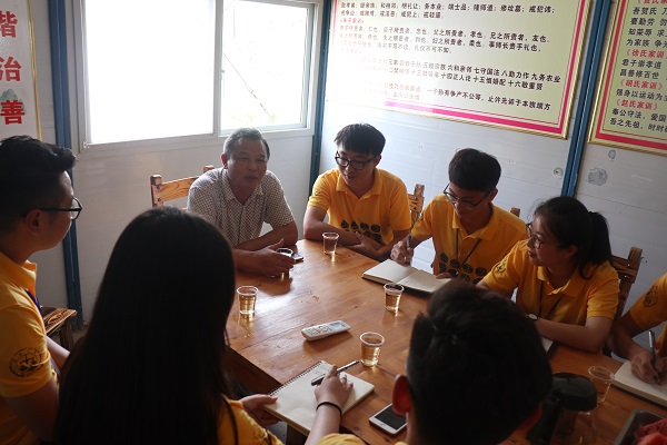 当天下午,实践团一行又来到青树坪镇金土地农民专业合作社,与合作社理事长、兴星村支部书记朱小平进行交流交谈。 “通过十年的努力,合作社的土地流转面积达6250亩,所在比例区域超过六万亩,在种植、养殖、休闲农业等产业取得显著成效。” 朱书记向同学们介绍了金土地农民专业合作社的基本情况,并向同学们介绍合作社致力于打造具有区域化、规范化、布局化、生态化、有机化的功能农业和公园农业。“一方热土一方人,一方文化一方情”,李书记还向同学们介绍了兴星村浓重的乡土文化,以及利用乡土文化开展新农村建设的相关情况。杨凯老师向兴星村赠送了普法书籍和同学们自己编印的《法棋牌游戏官网
