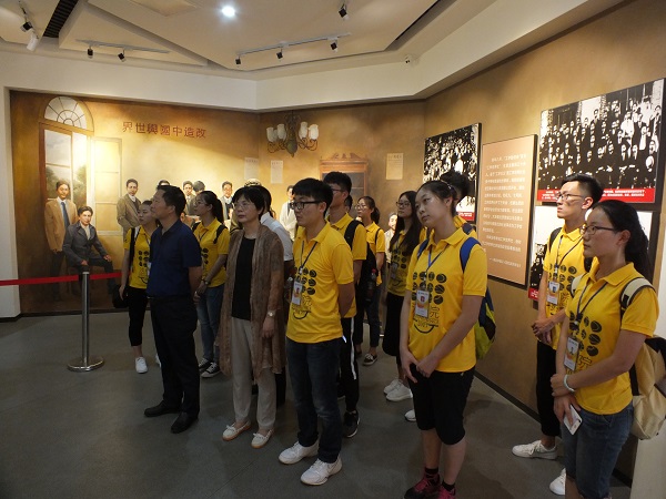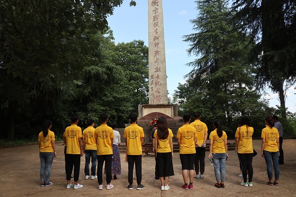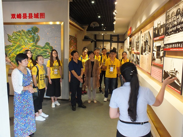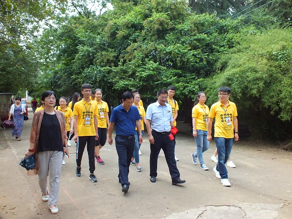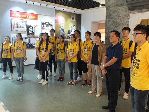 当天下午,“三下乡”社会实践团和李连友书记、付蓉芬副书记在双峰县委常委、组织部长陈群,蔡和森纪念馆馆长尹晓奔的陪同下参观全国青少年爱国主义教育基地——蔡和森同志纪念馆。在“蔡和森同志光辉一家”雕像前,全体师生肃立鞠躬,敬献花篮, 并面对庄严的党旗重温入党誓词。铿锵的誓词,坚定的誓言,表达着全体党员对党的无限忠诚和热爱。
