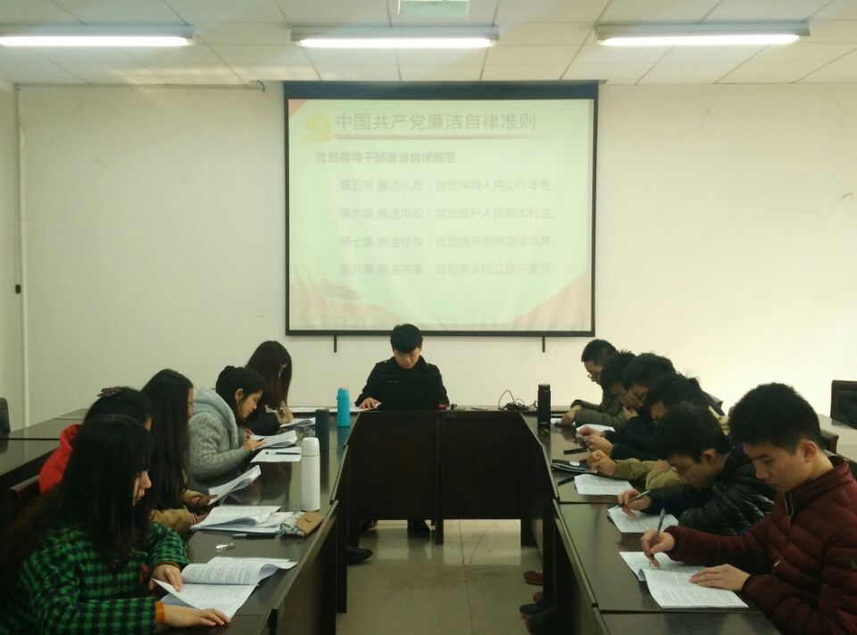 206教室开展了学习《中国共产党廉洁自律准则》及《中国共产党纪律处分条例》专题组织生活会。会上,支部书记带领大家逐条学习了《准则》及《条例》内容,参会的学生党员也都积极阐述了自己的观点。12月26日,本科生2013级行政管理、政治学党支部在法棋牌游戏官网