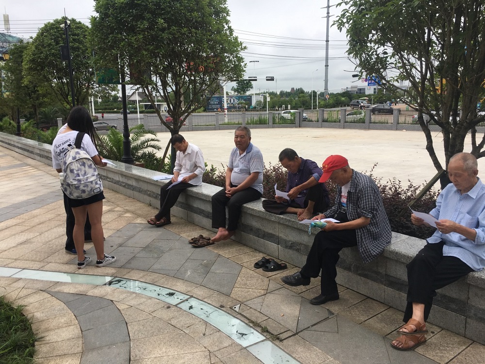 上午9时,宣讲团队的同学们走进云田镇,深入当地开展问卷调查活动。小组成员活跃在田间地头,走进村民家中,通过事先准备的问卷,了解当地村民的法律意识。在与村民的交谈中,同学们发现新时代背景下,当地经济虽获得翻天覆地的变化,但是村民的法律意识还是较为匮乏,老乡们虽然懂得要遵法守法,但具体的实施缺乏相关指导。在活动中同学们还发现当地村民们普遍遵守的一些风俗习惯实际是违背法律规定的,受此启发同学们更加认识到乡村普法的重要性。