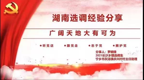 2.工作心得:成为基层的一名选调生以后,师姐谈到自己的几点工作心得“旗帜鲜明讲政治、学习敢强超本领、干群联系知民情、理想坚定有信心”。并寄语同学们:与群众同心、与时代共振、你我共绘新湘蓝图。