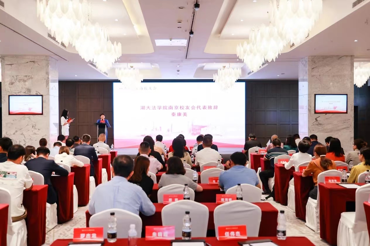 南京校友会秦康美教授代表长三角的校友致辞,她表示参加此次活动感受到了家的温暖,体现了湖大法棋牌游戏官网