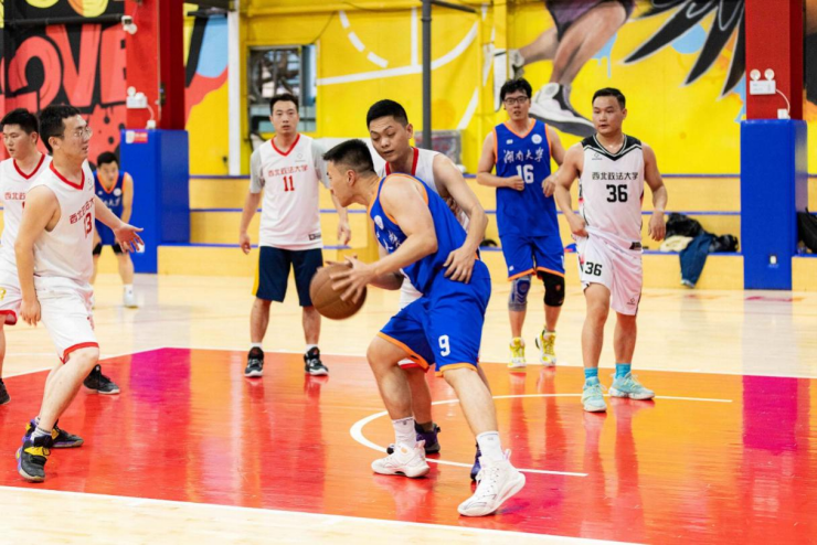 校友篮球队的最后一场比赛在三湘篮球公园进行,本场比赛我们对战西北政法大学。随着裁判员一声哨响,全场比赛开始。首节比赛,湖大法学篮球队首开纪录,拿下本场比赛第一次得分。随后我方进攻哑火,对方暂时轰下9:0的小高潮。双方不下火线,各得两分,将比分带至4:11。我方防下了对方的进攻,拿到后场篮板,23号队员郭少杰一路推进至对方禁区,面对防守队员挑篮得分。随后9号队员叶玮底角接球,面对防守者遛底线进入禁区,面对多名协防队员,强硬打进,将分差缩至3分。第一节比赛结束双方比分为8:11。