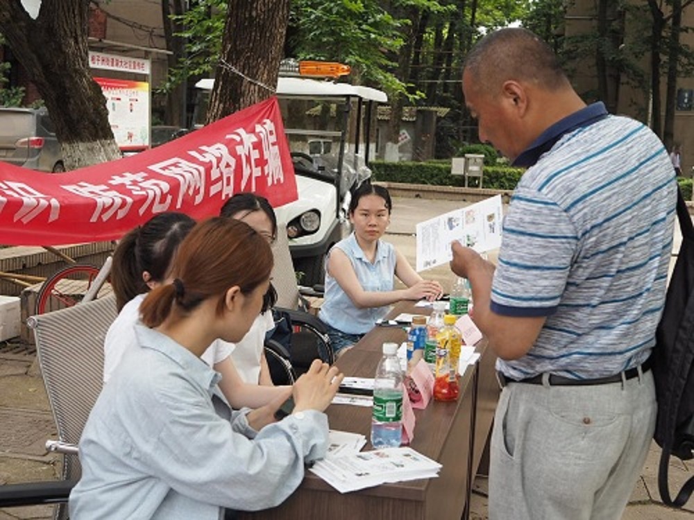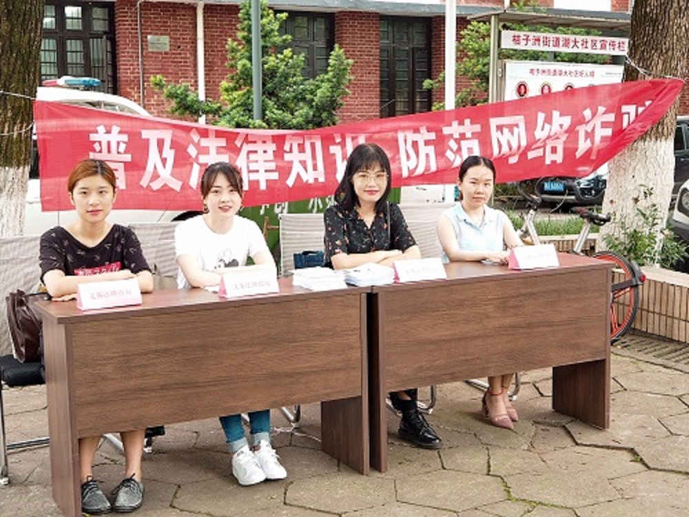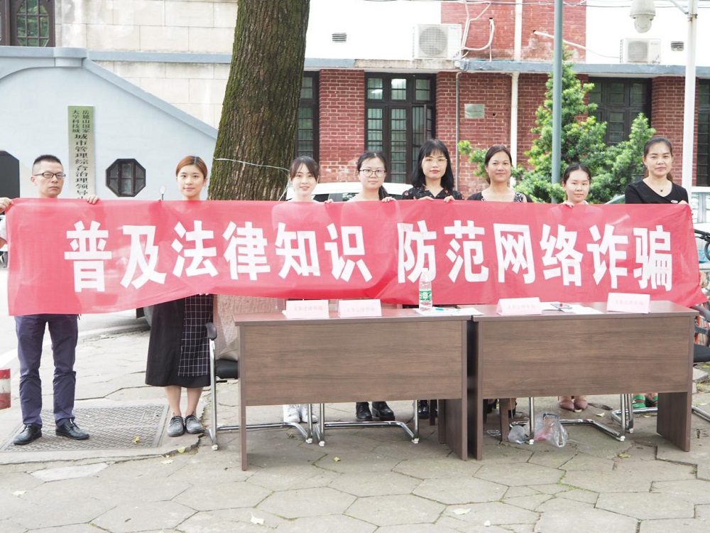 2016级研究生法学党支部的七名党员联合湖南大学社区,开展了以“普及法律知识,防范网络诈骗”为主题的普法宣传活动。