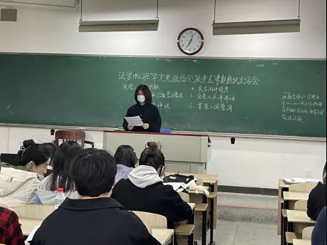 法学1902班团支部组织生活会和团员教育评议会于2021年11月19日晚七点在综合楼301教室举行,会议由团支书赵玲羽主持。