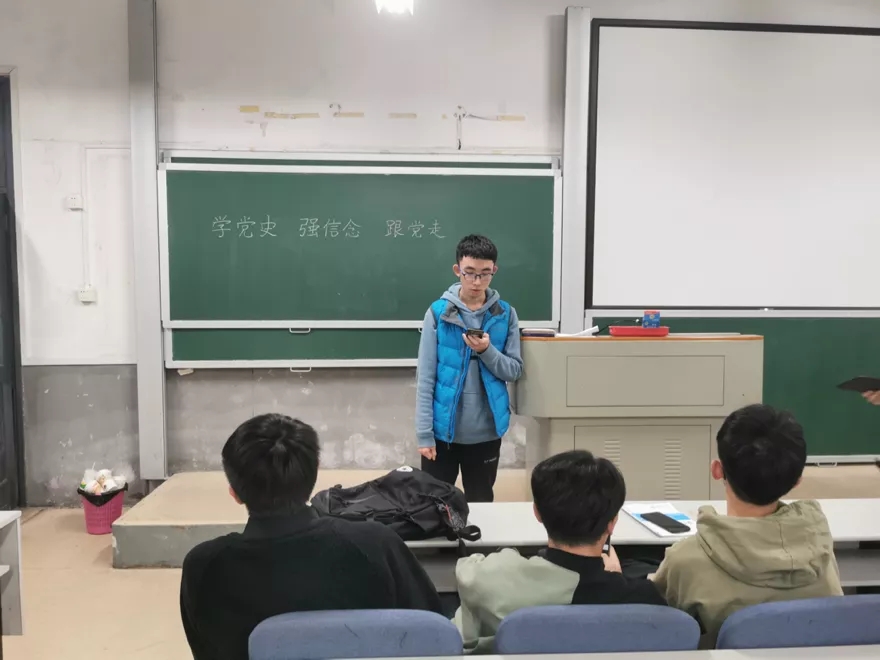 的刘天、胡雅涵、吴宇轩等同学分别从党的十九届六中全会的背景、内容等方面进行介绍,并分享自己的理解。刘天同学认为,中国共产党以英勇顽强的奋斗向世界庄严宣告,中华民族迎来了从站起来,富起来到强起来的伟大飞跃;党的百年奋斗,改变了中国人民的前途命运、展示了马克思主义的强大生命力、开辟了实现中华民族伟大复兴的正确道路、深刻影响了世界历史进程、创造了走在时代前列的中国共产党。吴宇轩同学则认为新时代团员应当坚持中国共产党的领导,听党话,跟党走;坚持中国道路,增强道路自信,作为新时代的中国青年,应当牢记实现中华民族伟大复兴的使命,严格要求自己,不负时代、不负韶华、不负党和人民的殷切期望。