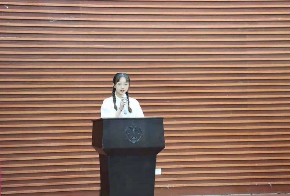 本科毕业生党员代表梁晓洁回顾了自己的入党初心以及对党和人民作出的承诺,表达了要永远保持奋斗精神、永远保持赤子之心的决心。