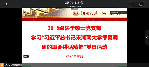 为深入学习贯彻习近平总书记考察调研湖南大学重要讲话精神,2018级法学硕士党支部于10月19日晚在线上举行主题学习活动。