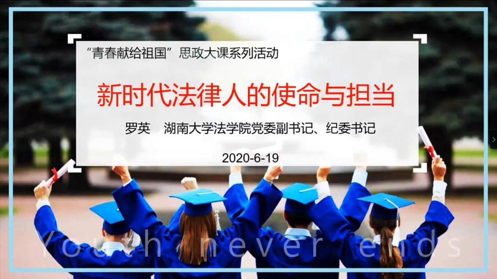 党委副书记、纪委书记罗英老师为毕业生主讲了“新时代法律人的使命与担当”的线上思政课。