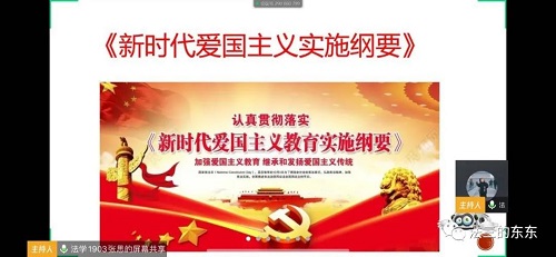 会议伊始,张思同学播放习近平总书记关于防疫的重要指示视频,让同学们进一步了解相关防疫举措,并且,张思同学向大家介绍《新时代爱国主义实施纲要》,进一步加强爱国主义教育,有利于全体同学认真贯彻落实相关纲要。