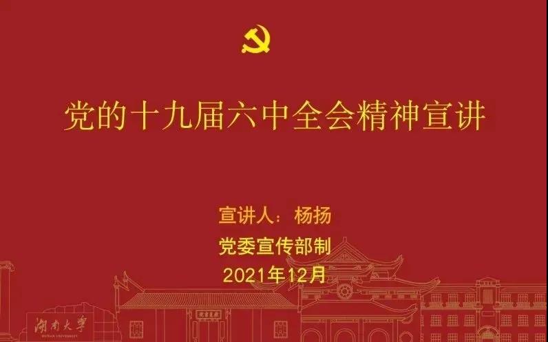 党委宣传部统一提供。宣讲报告围绕党的十九届六中全会召开的总体情况、深刻认识党的十九届六中全会重大意义、深刻认识党的十九届六中全会重要成果、如何宣传贯彻落实十九届六中全会精神等方面内容进行系统地宣讲,全面回顾了党的十九届六中全会精神。宣讲报告内容丰富、分析透彻,对加强党的历史和思想政治理论学习,提高党性修养,具有很强的理论指导作用。