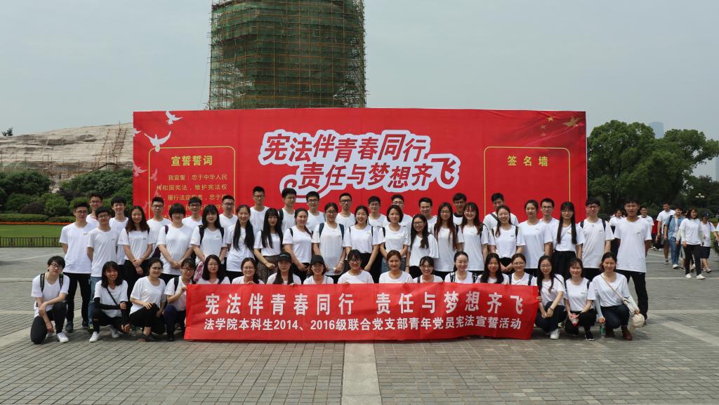 “我宣誓:忠于中华人民共和国宪法,维护宪法权威,履行法定职责……”5月3日下午,在五四青年节即将来临之际,棋牌游戏官网 本科生2014、2016级联合党支部全体成员在橘子洲参加“宪法伴青春同行,责任与梦想齐飞”青年党员宪法宣誓活动,以庄严神圣的宪法宣誓仪式庆祝五四青年节。