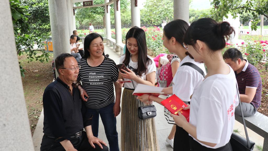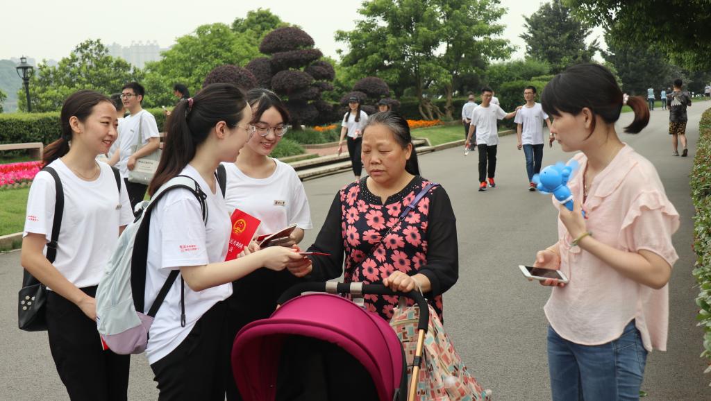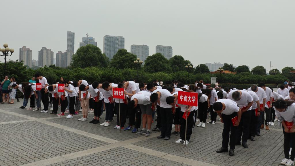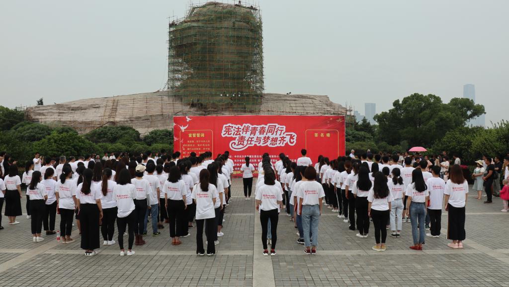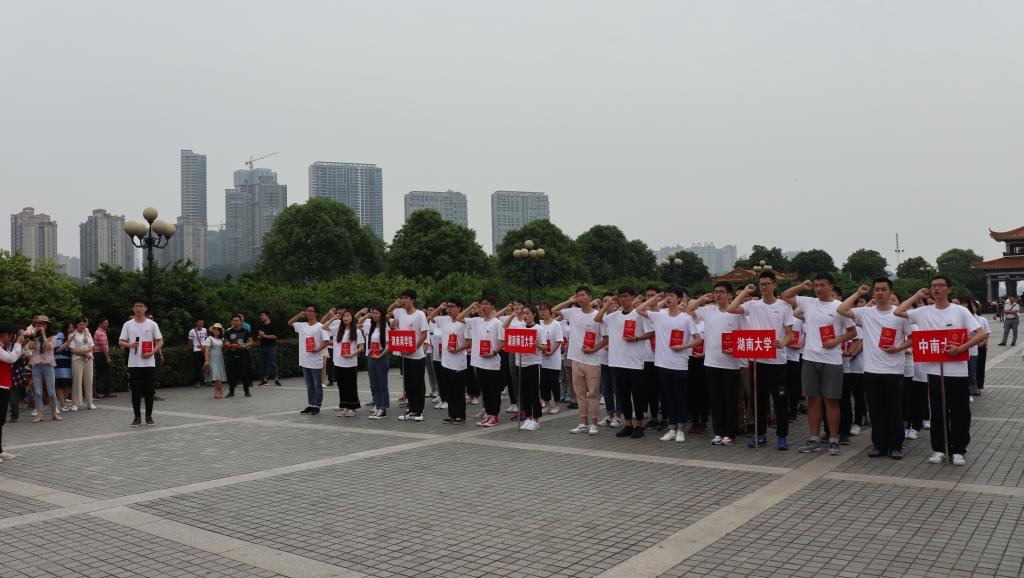 活动在雄壮的国歌声中正式开始,同学们怀着崇敬的心情瞻仰青年毛泽东同志雕像并鞠躬致敬。随后,在湖南大学李宇哲同学的带领下,同学们手捧《中华人民共和国宪法》庄严宣誓,铿锵的誓词表达了全体青年学生学习宪法、忠于宪法、维护宪法,为建设法治中国不懈奋斗的坚定誓言。同学们还主动向橘子洲景区的游客发放宪法宣传材料,普及法律知识,提供法律咨询与服务。