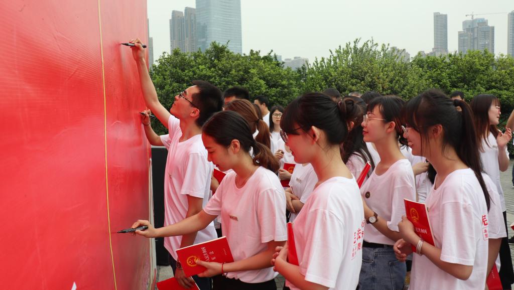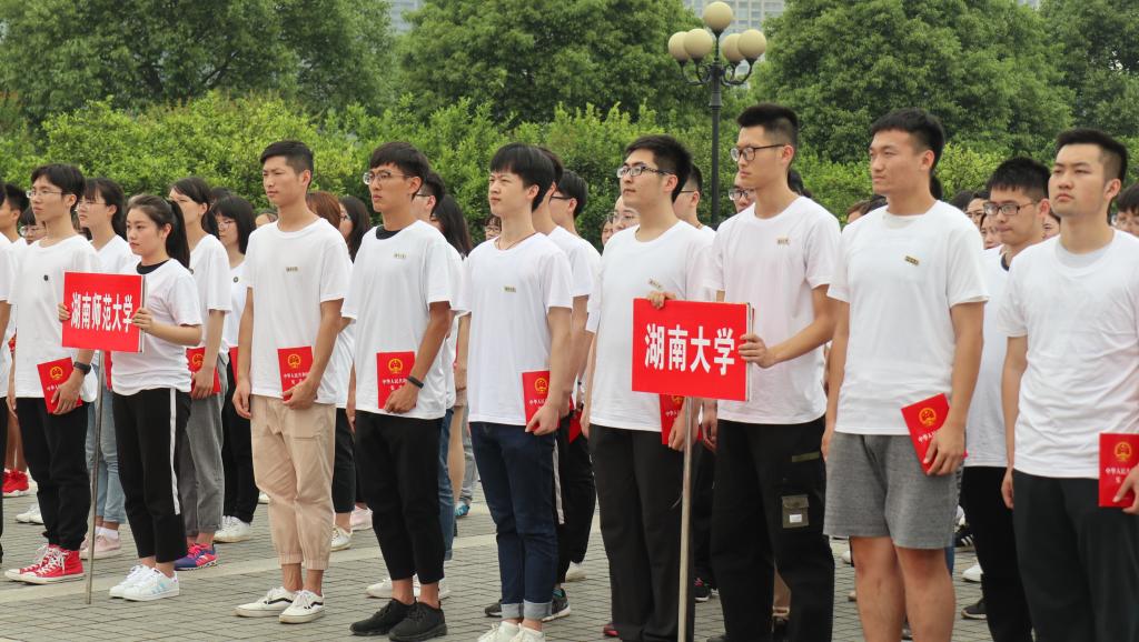 棋牌游戏官网 、长沙市司法局、岳麓区法制办等有关领导出席宣誓活动。活动由中共长沙市岳麓区委法治岳麓建设领导小组办公室、岳麓区司法局、共青团岳麓区委等单位主办,棋牌游戏官网 、桔子洲街道等单位协办。