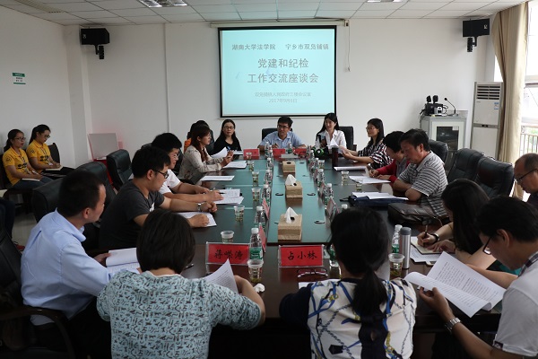 公共管理系主任、公共管理系党支部书记郭渐强,政治学系党支部书记、湖南大学廉政研究中心副主任田湘波,宁乡人民法院双凫铺法庭庭长刘海涛、双凫铺镇纪委书记贺朝前等参加座谈会并发言。