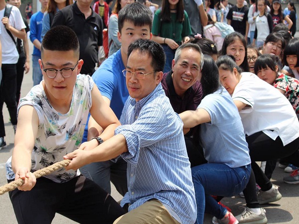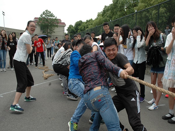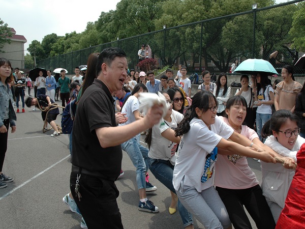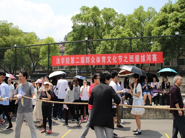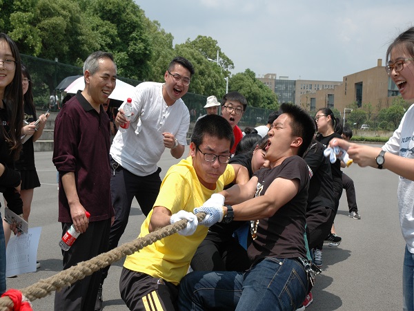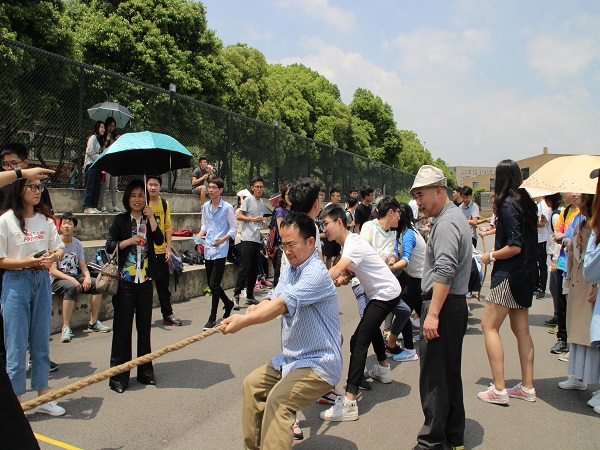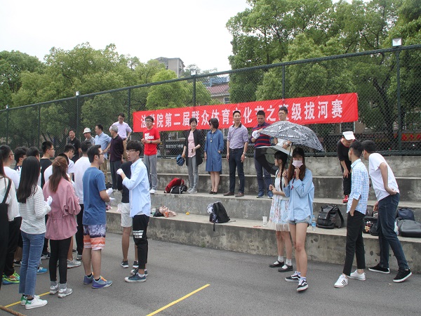 第二届群众体育文化节开幕。参加本次拔河比赛的队伍共有14支,每个队伍中都有一至两位老师参与其中。