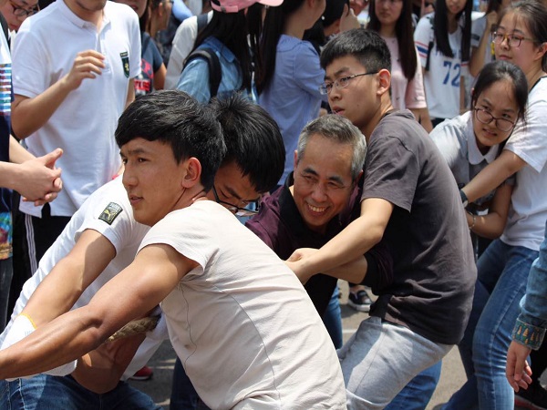 第二届群众体育文化节之班级拔河比赛在研究生楼操场火热进行。院长屈茂辉、党委副书记、副院长付蓉芬与棋牌游戏官网