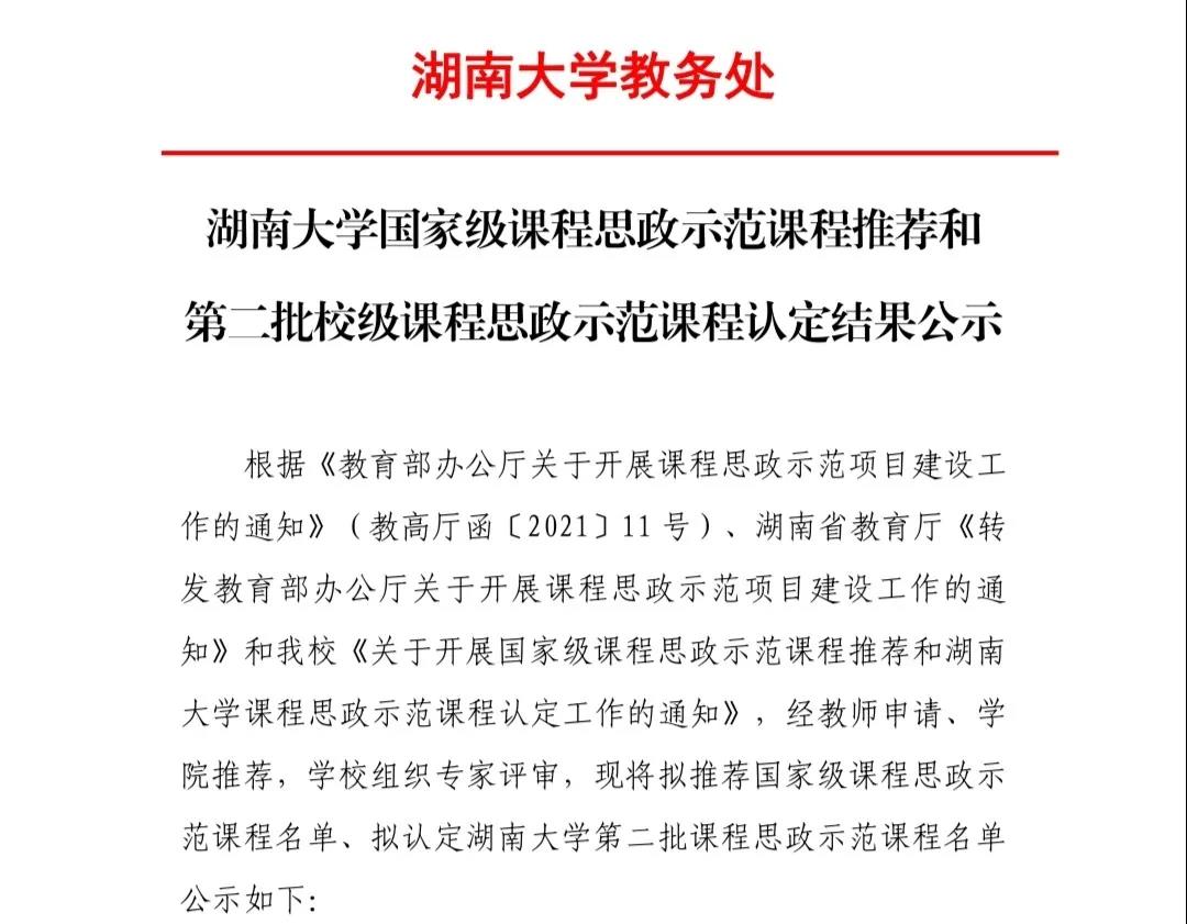 教务处公布了湖南大学第二批课程思政示范课程名单,法棋牌游戏官网