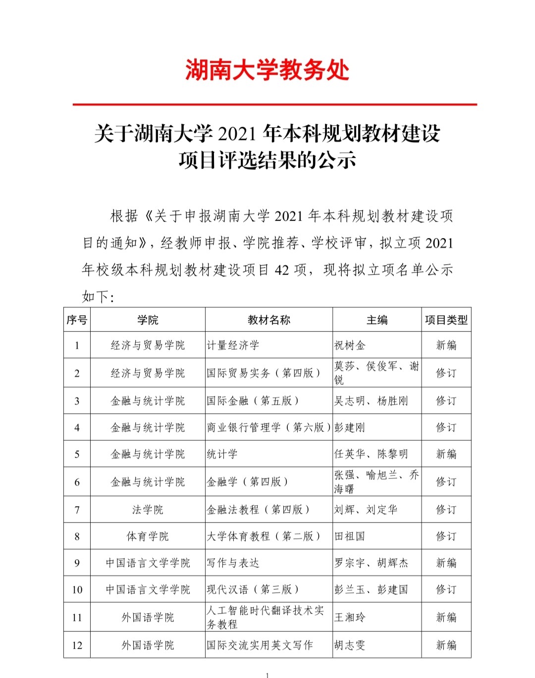 近日,湖南大学教务处下发《关于湖南大学2021年本科规划教材建设项目评选结果的公示》,棋牌游戏官网