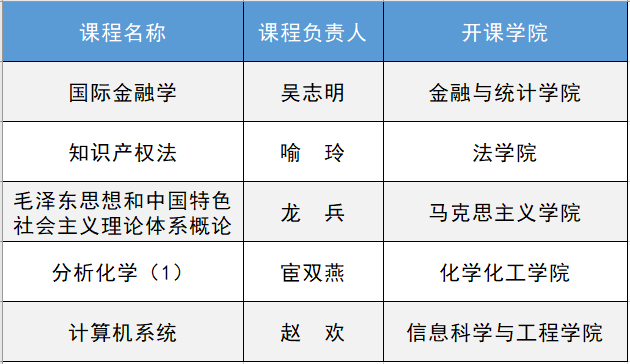 推荐、教务处审查、专家评审、专家现场听课评价、多渠道广泛征求意见、校内公示后,产生湖南大学首批“标杆课程”。