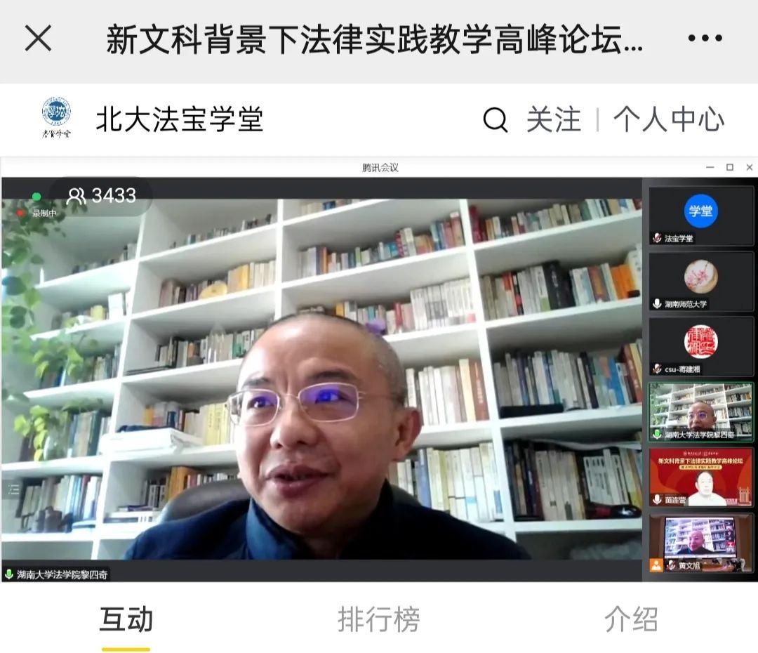 院长黎四奇教授就“新文科背景下法律实践教学暨法律实务课程标准”等相关主题参会与谈分享。 他介绍了棋牌游戏官网