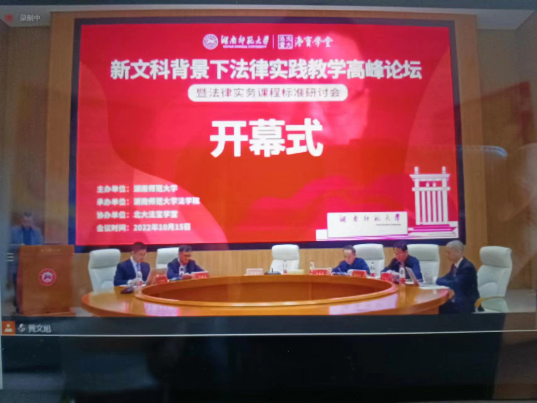 国际法研究所所长黄文旭的《“科技+协同”开发法学新文科课程<大数据与法律检索>的创新实践》等报告依次围绕“新文科背景下法律实践教学暨法律实务课程标准”的核心与理论前沿问题进行了主题报告与分享交流。