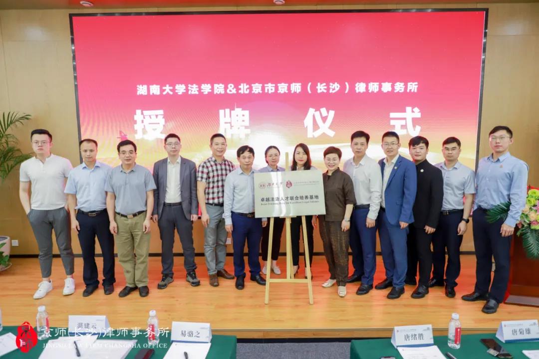 正式签订合作协议,在卓越法治人才培养等方面进行全面合作。签约结束后,双方举行了授牌仪式,京师长沙成为湖南大学卓越法治人才联合培养基地。