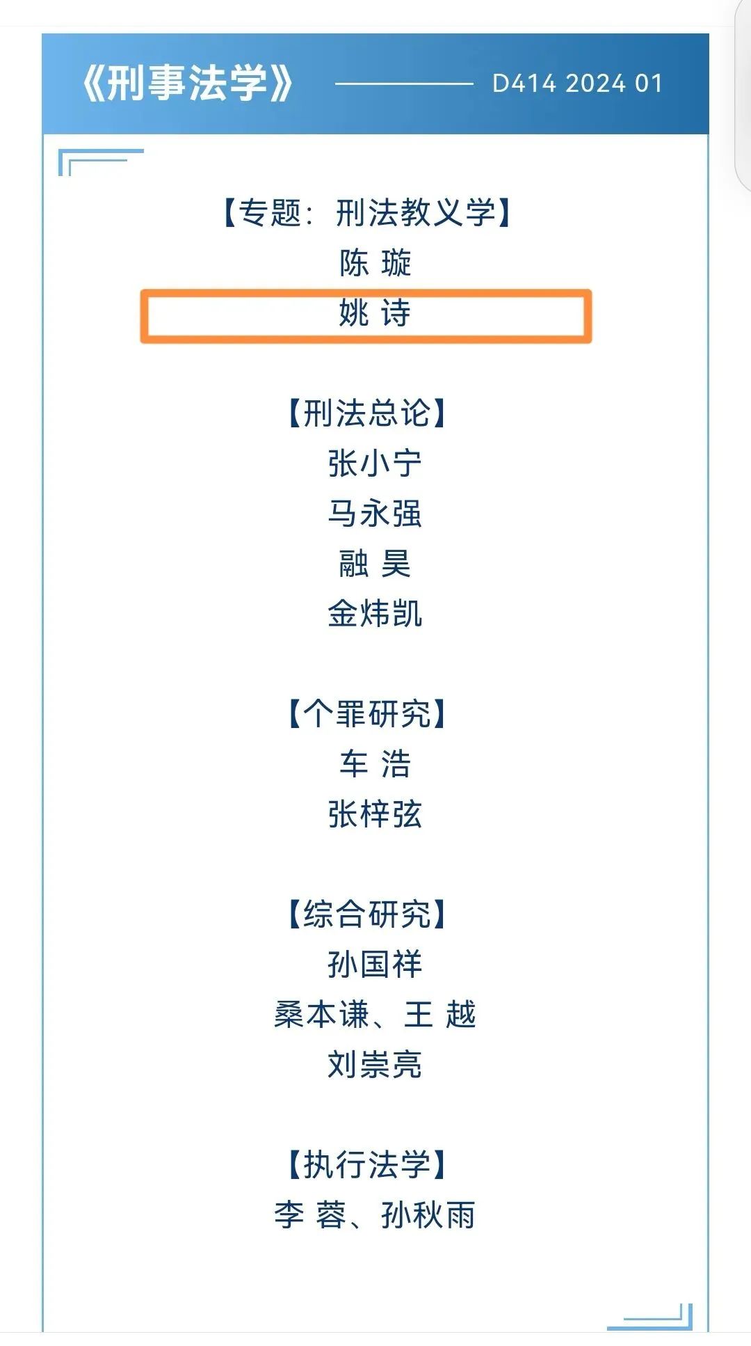姚诗教授论文被人大复印报刊资料《刑事法学》全文转载
