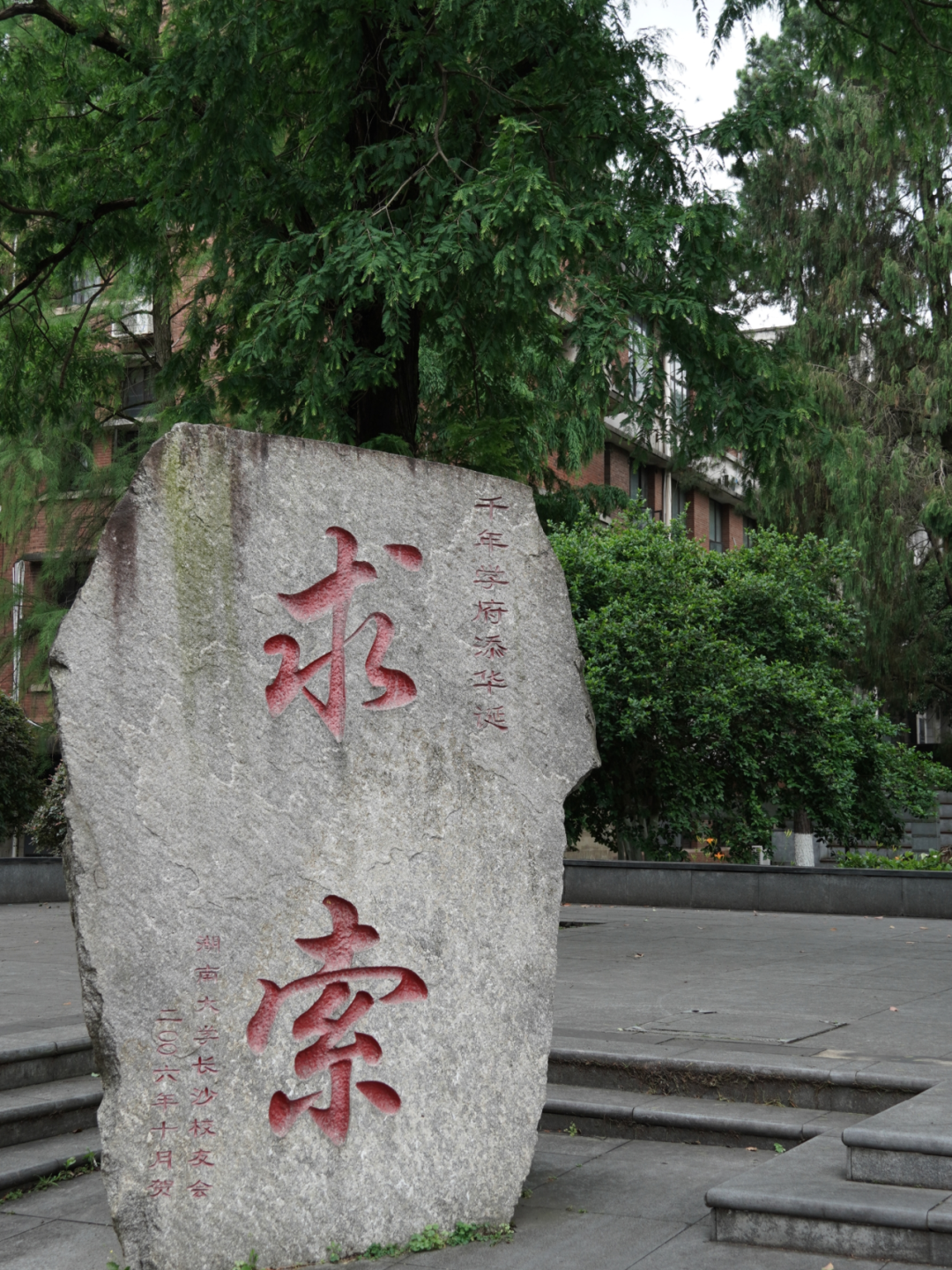 初入校门,映入眼帘的是一座巍然屹立的石碑,上书“湖南大学”四字,乃毛主席亲笔所题,笔力遒劲,气势非凡。石碑旁,两根石柱矗立,仿佛诉说着那段悲壮的历史—华北事变。北大、清华、南开南迁,长沙临时大学应运而生,后因战火,再迁西南,成立西南联大。