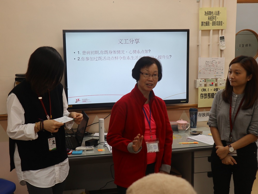 (义工们介绍中心儿童及青少年服务项目实施情况)