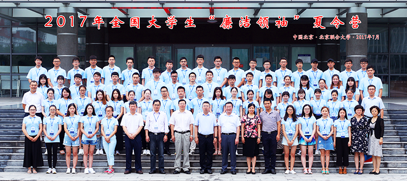 “我自愿加入廉洁行动,终身坚守廉洁、拒绝腐败,推广诚信、服务社会,团结同道、积极进取,为建设廉洁中国而奋斗!”在17日举行的夏令营开营仪式上,来自浙江大学、武汉大学、北京航空航天大学、湖南大学等高校的64名青年大学生用坚定的誓言激励和领悟青年学子的廉洁责任和使命。廉政学会会长、北京航空航天大学任建明教授代表学会在开营仪式上致辞,并发布了2017年廉洁大使名单,湖南大学张迎同武汉大学、西安交通大学等全国39所高校的39名在校大学生被授予“廉洁大使”称号。廉政学会副会长、湖南大学廉政研究中心执行主任袁柏顺教授宣读了《关于表彰2016年12.9全国大学生廉洁教育活动月优秀组织奖和地区性优秀活动的表彰决定》。湖南大学湖湘廉风学社荣获了2016年12.9全国大学生廉洁教育活动月“优秀组织奖”和地区性优秀活动奖。北京市纪委常委高云峰、北京联合大学党委书记韩宪洲等领导出席夏令营开营仪式并讲话,北京联合大学纪委书记张楠主持开营仪式。出席活动的各位领导、嘉宾和辅导老师向廉洁大使颁发了徽章和证书。