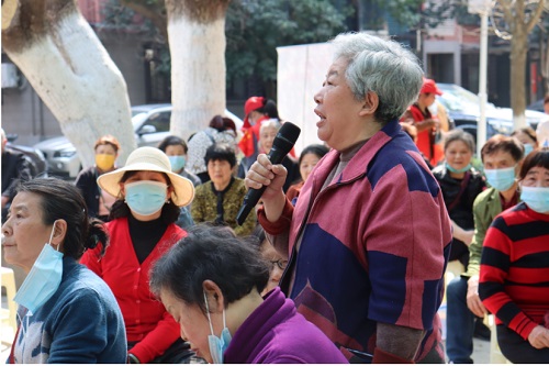 最后,为进一步增强居民的维权意识,展开了普法答疑活动,罗英老师和志愿者们就居民疑问作了耐心细致的解答。这一环节使社区与高校更深入地了解居民诉求,以便更高效地解决群众问题。