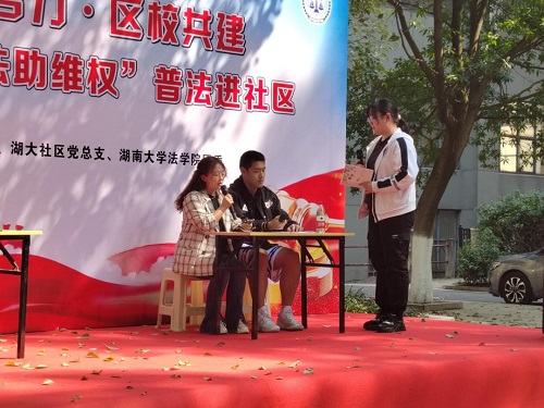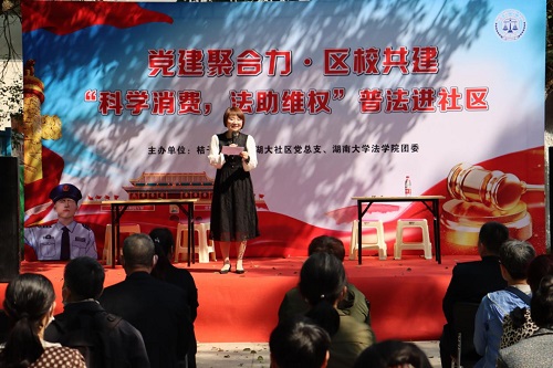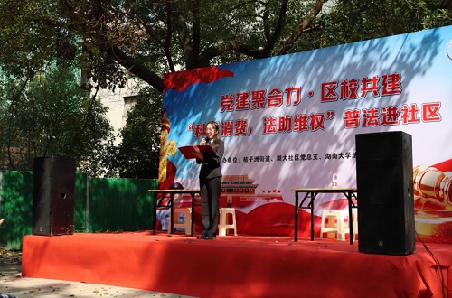 团委、研究生会联合岳麓区桔子洲街道湖南大学社区党总支开展了以“科学消费,法助维权”为主题的普法宣传进社区活动。棋牌游戏官网