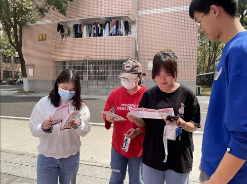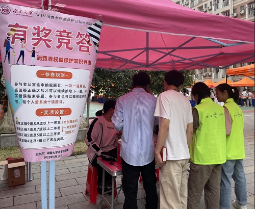 志愿者们向路过的同学们分发宣传册,并向他们介绍有关消费者权益保护的相关知识,吸引同学们参与到活动中来。