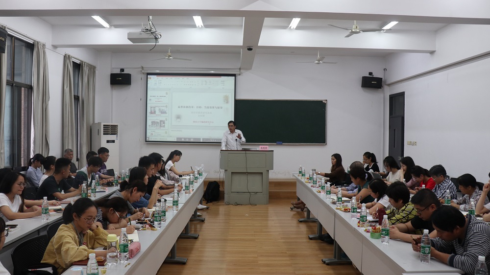教授、湖南省廉政研究基地、湖南大学廉政研究中心执行主任袁柏顺教授担任主讲嘉宾。岳麓区党员群众讲习所湖南大学社区党员代表、各年级学生代表和湖湘廉风学社成员60余人参加了活动。