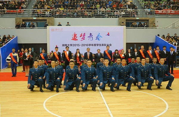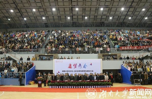 12月20日晚,“追梦青春”湖南大学2015-2016学年度学生表彰大会在南校区体育馆隆重举行。校领导蒋昌忠、段献忠、栾永玉、陈伟、陈收等出席大会。