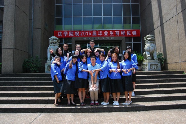 学士服下掩饰复杂心绪,胶片记录熟悉的笑脸。岳麓山脚,桃子湖畔,匆匆这些年。离愁虽浓,但记得,珍重永远。——2011级法学3班