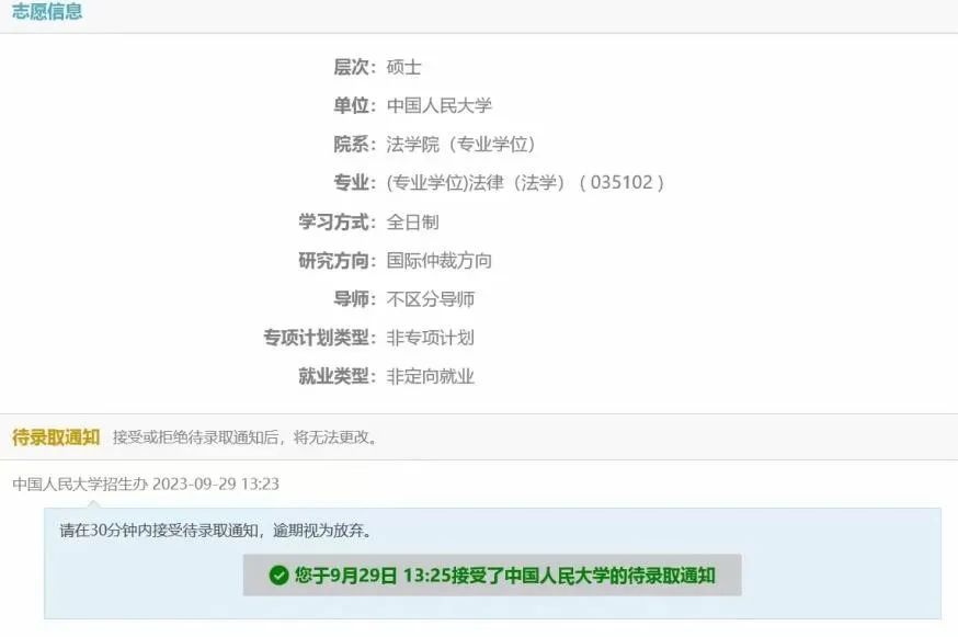 最终去向:中国人民大学法律硕士(国际仲裁方向)